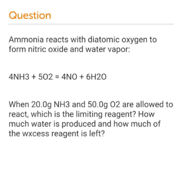 Solved Ammonia Reacts With Diatomic Oxygen To Form Nitric...